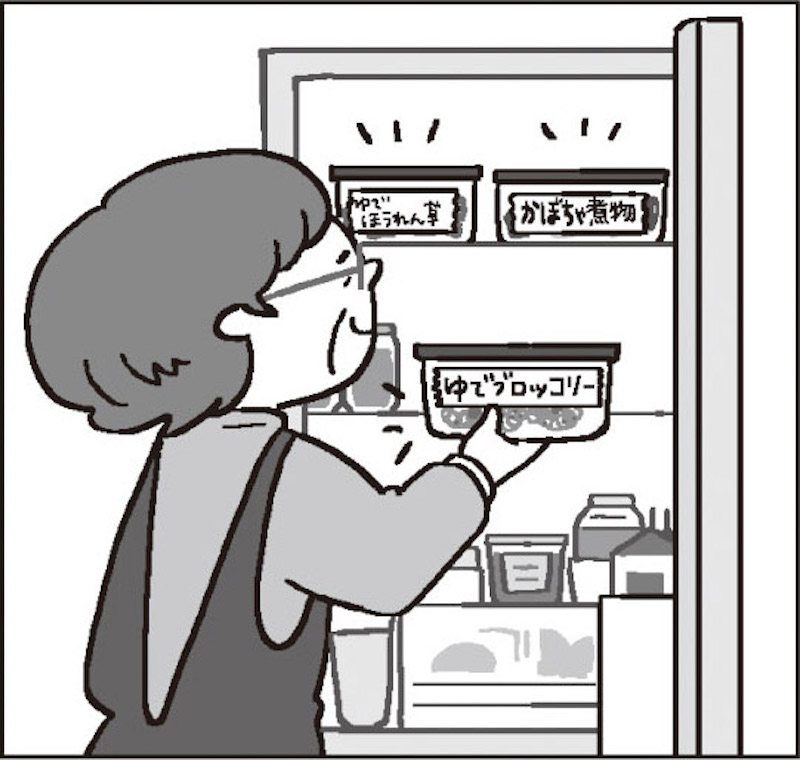「たとえば、カルシウムとたんぱく質、鉄分が不足しがちなら、小魚とナッツのおやつを食べる。卵、納豆、豆腐は毎日必ず食べる。野菜が足りなければ、ゆでたほうれん草やブロッコリー、レンジ調理したかぼちゃを冷蔵庫に常備していつでも食べられるようにする。それだけでもバランスよく栄養が摂れます」(堀江さん)。