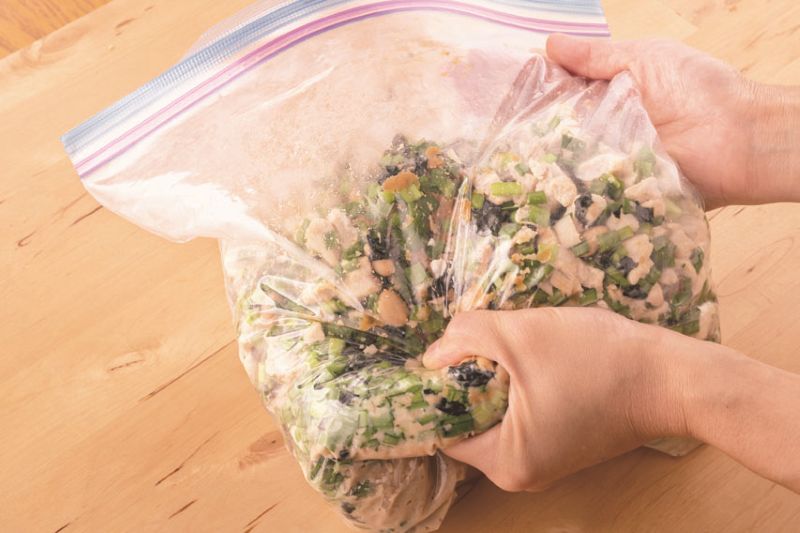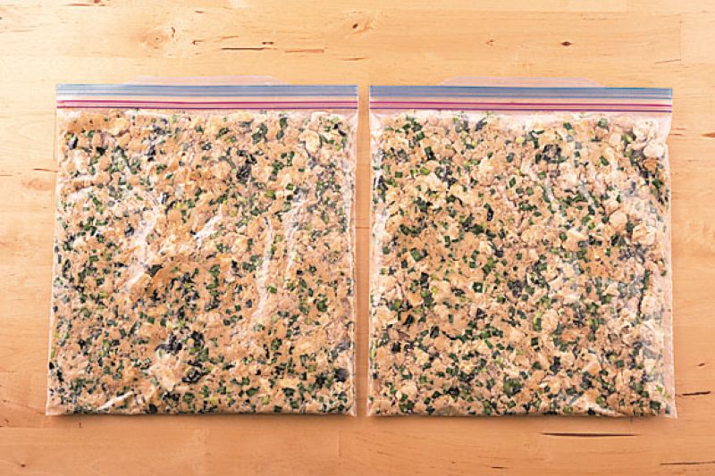 【6】全体がなじんだら2分割して保存袋に。もしくは約90gずつにラップなどで小分けし、冷凍する