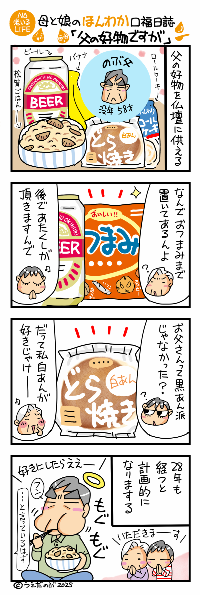 毎年同じ思い出話をして、同じ後悔を口にして、同じように泣いて、「お父さんの分もおいしいものいっぱい食べて楽しく過ごそうね」と言いあって終わります。