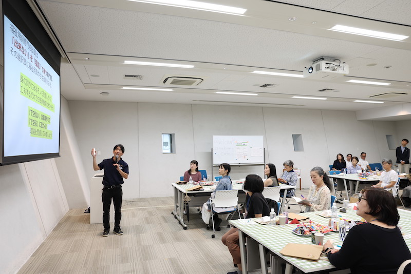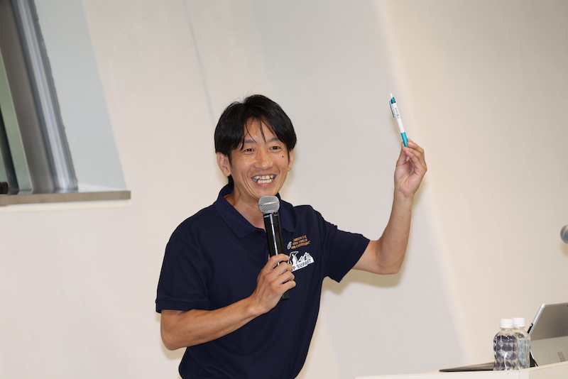 マイクを握る山上さんが、参加者全員に配られた編集部特製の「介護のなかま」ロゴ入りボールペンを手に「このボールペンをもらえたということは、私も皆さんと“なかま”ですね!」と話を切り出すと、会場は一気に和やかに。