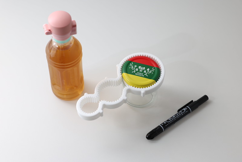 今回、山上さんがセレクト、紹介した介護にも使える100円アイテムを参加者のみなさんへのお土産に。片手で使える『ノック式の油性ペン』、握力が弱ってきてもフタを開けられる『ビンオープナー』、ペットボトルのキャップをいちいち回して開けずにすむ『ボトルキャップ』の3点だ。