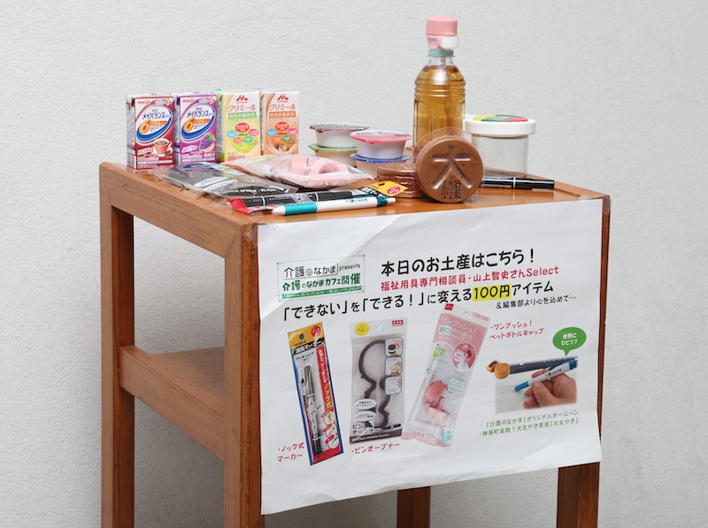 「100円グッズを介護にもいかす」取り組みにも積極的な山上さんは、この日もダイソーで見つけた便利グッズを持参。
