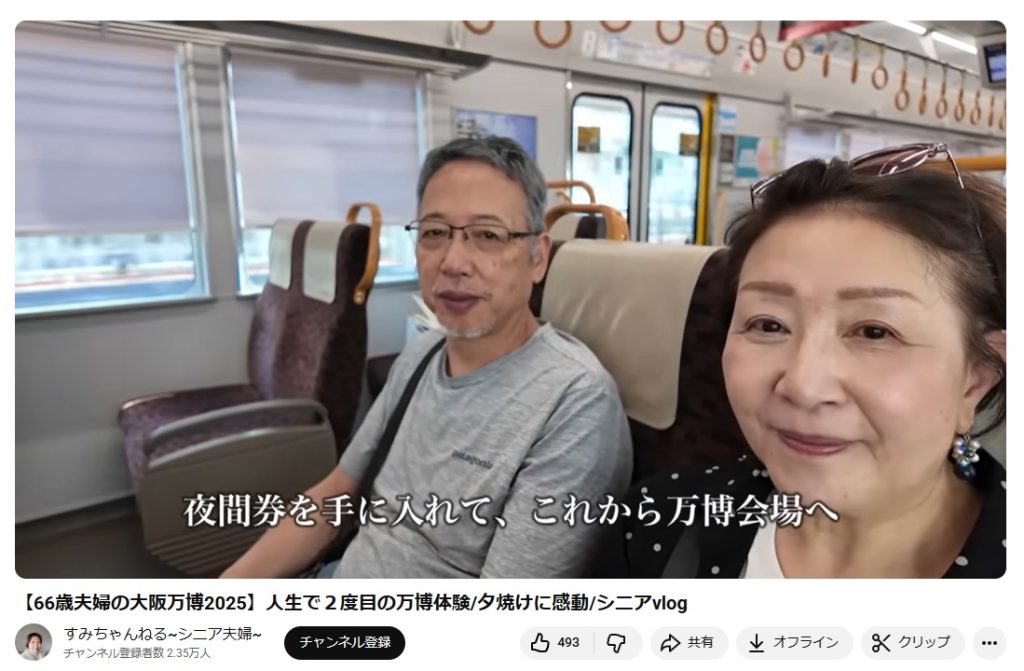 大阪・関西万博に出かけた様子も投稿し、人気に。【66歳夫婦の大阪万博2025】人生で2度目の万博体験/夕焼けに感動/シニアvlog https://www.youtube.com/watch?v=4qDwG6NbQKo