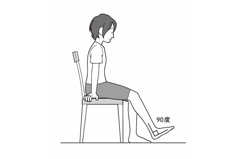 ・こむら返りがよく起こる足を前に出して、床から少しだけ浮かせる。このとき、足首の角度は90度前後にキープする