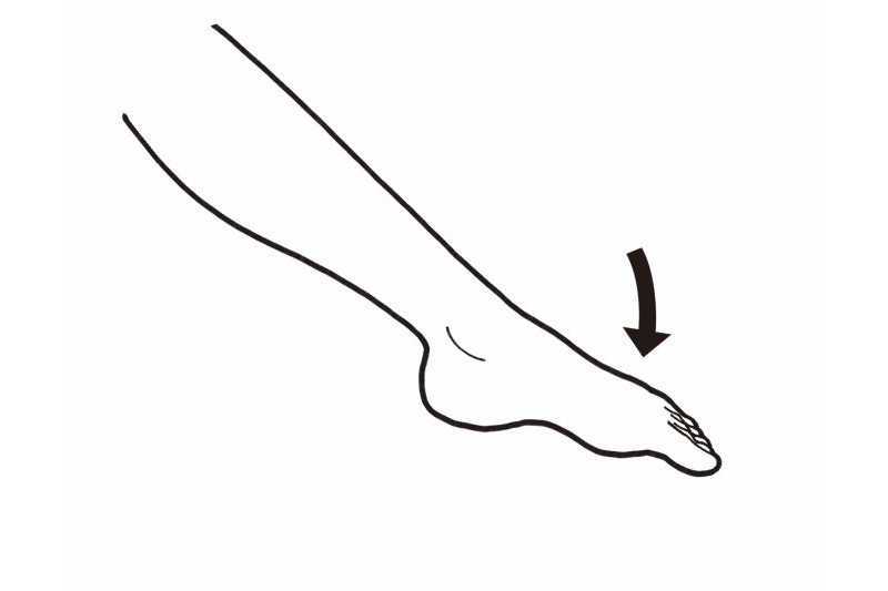 【1】つま先を伸ばすようなイメージで、足首をゆっくり「限界」まで寝かせる。