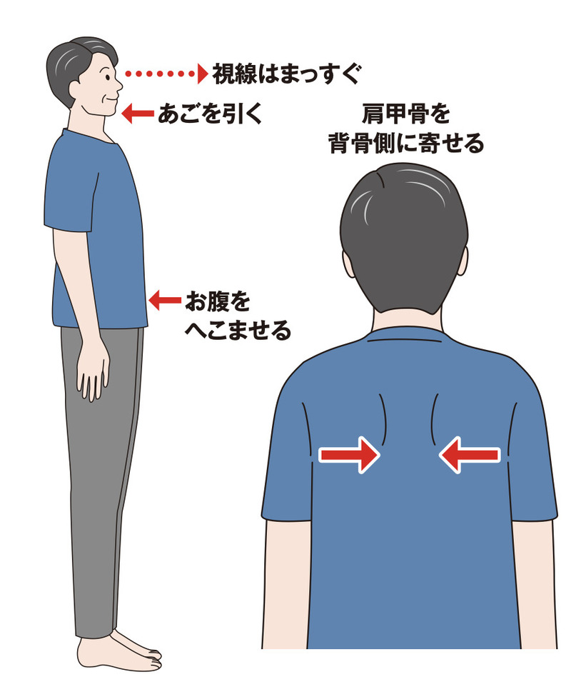 「健脚を保つ第一歩は、日常生活で美しい姿勢をキープすること。そのうえで『段差につまずく』『足がもつれる』といった日常生活での症状から歩く力が衰えた原因を見極め、原因別の対策を行なうことが重要です」(以下、「」内は金岡教授)