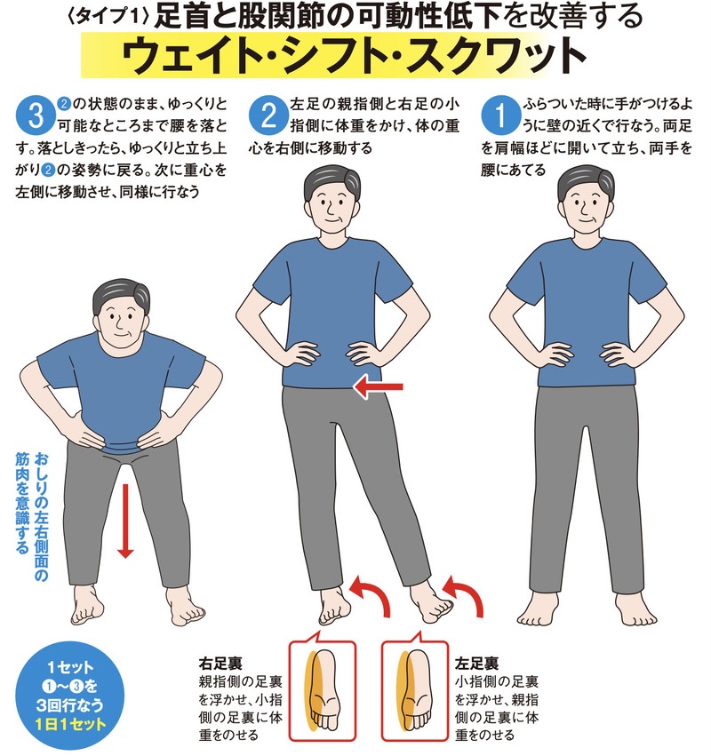 小さな段差でのつまずきが増えたら「ウェイト・シフト・スクワット」