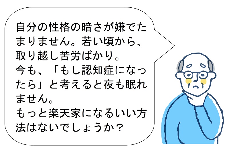 今回のお悩み:「自分の性格の暗さが嫌だ。もっと楽天家になりたい」