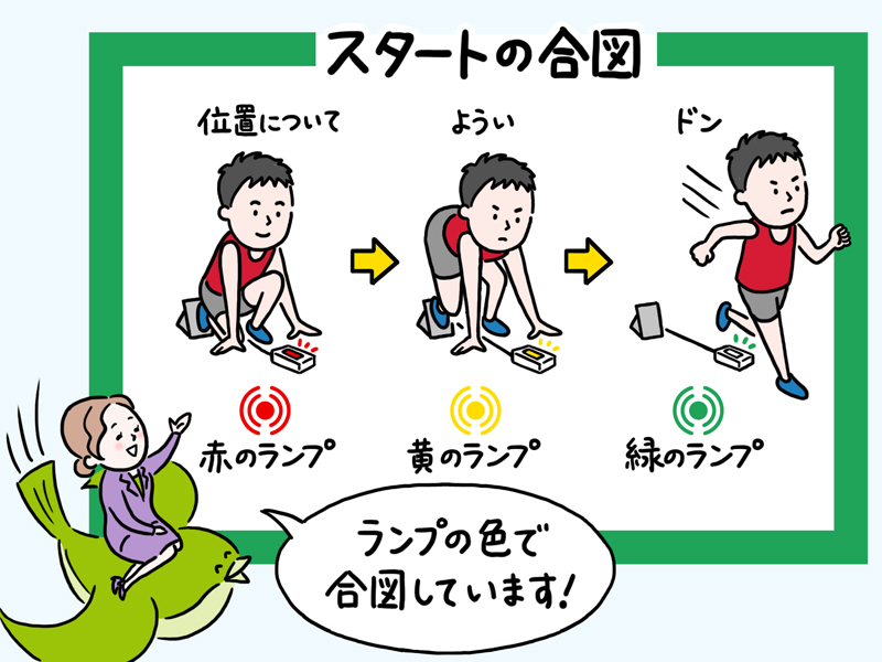 競技における合図といえば、「スタート」がまっさきに思い浮かぶのではないでしょうか。スタートの合図について、短距離走を例に見ていきましょう。