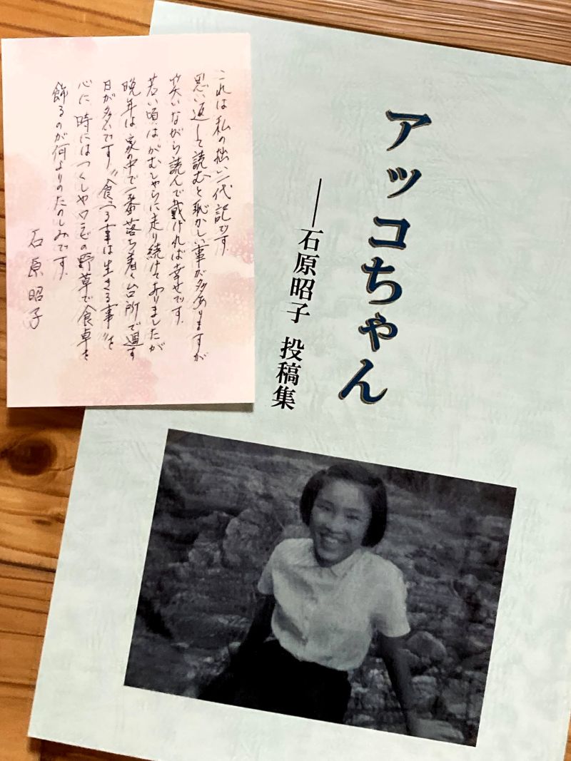 15年前に先に旅立った夫・石原健二について、あらためてインタビューしてみた。苦労させられたことへの恨みを語りつつ、息子が言うのもヘンだが、言葉の端々に深い愛情が感じられる。「石原昭子らしさ」を出すために方言をそのまま残した文体は、母の友人知人には好評だったものの、よその地域の人が読むと意味不明かもしれない