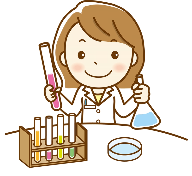 科学の実験中の女性がいます。上の絵と下の絵では5か所の違いがありますので、見つけてください。制限時間は30秒。