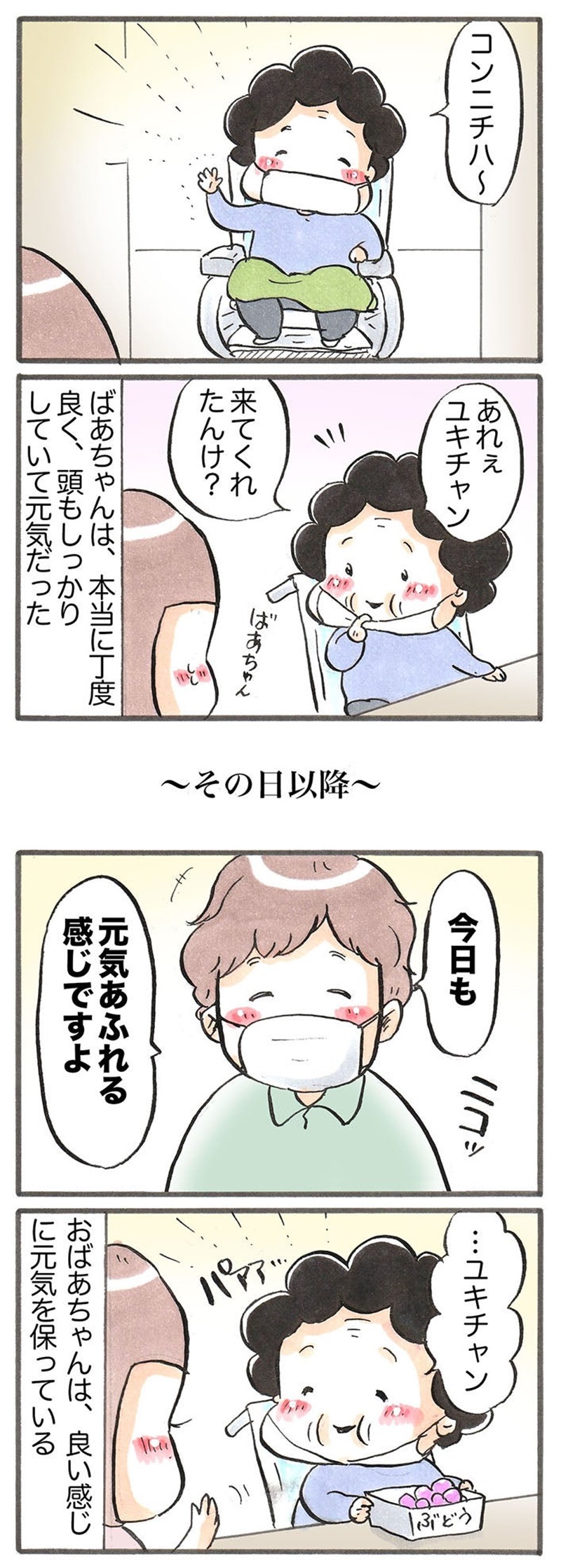 大好きなおばあちゃん(101歳)が介護施設に入居「ぼんやり・しゃっきりの波」と面会時の対応【作者が明かす】