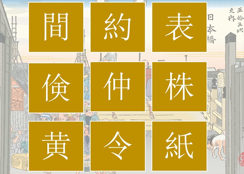 3文字の熟語を1字ずつ分けて、適当に置いてあります。意味がある言葉になるように集めてみてください。