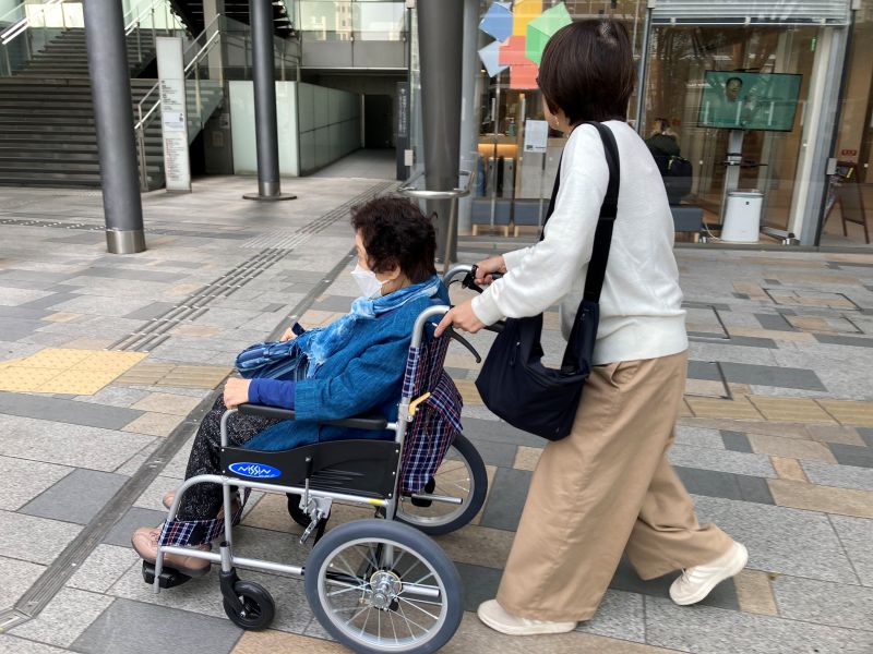 母の車椅子を押すのは複雑な心境だったが、感傷に浸っている場合ではない。なんせ慣れないことなので、真っすぐ進むだけでもひと苦労だ。あとで聞いたら、点字ブロックの上に乗ると少し衝撃を感じたらしい。気にせず揺らしてしまって申し訳なかった。